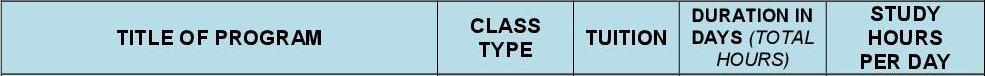 START OF NEW CLASSES: new classes start the first week of each month (trainees can choose when to start their program as long as they have completed registration at least 10 days in advance).